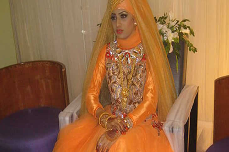 Aunque hay muchos vestidos tradicionales preciosos para una novia en su gay halud, este no es uno de ellos. El color es simplemente un poco abrumador. ¡Hay tanto de esta tela amarillo oscuro! La combinación de color y cantidad no funciona.