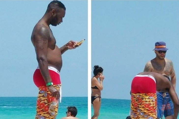 Egal, ob er gerade dabei war, sich zu verkleiden oder ob er versuchte, einen Trend zu setzen, wir können diesen Look nicht für einen Tag am Strand empfehlen. Es sieht unkomfortabel aus… für alle!