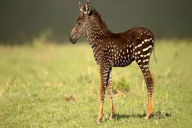 #33 一隻斑馬幼駒,因罕見基因突變,天生帶有斑點而非條紋