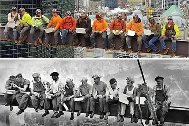 Chicago’s local iron workers recently remade the iconic ‘Lunch Atop a Skyscraper’ photo—the legendary snapshot originally taken in 1932. Sitting casually on a steel beam, these modern workers pay tribute to the brave souls who built the city’s skyline nearly a century ago.