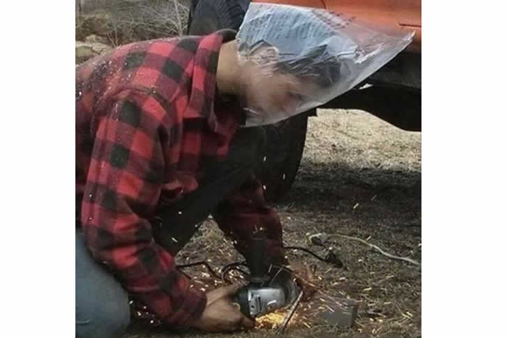 When life gives you plastic bags, make a welding mask! This welder’s ingenuity knows no bounds as he battles sparks with nothing but a grocery sack fashioned into a makeshift face shield. While professionals might cringe at his unorthodox safety measures, there’s no denying his resourcefulness.