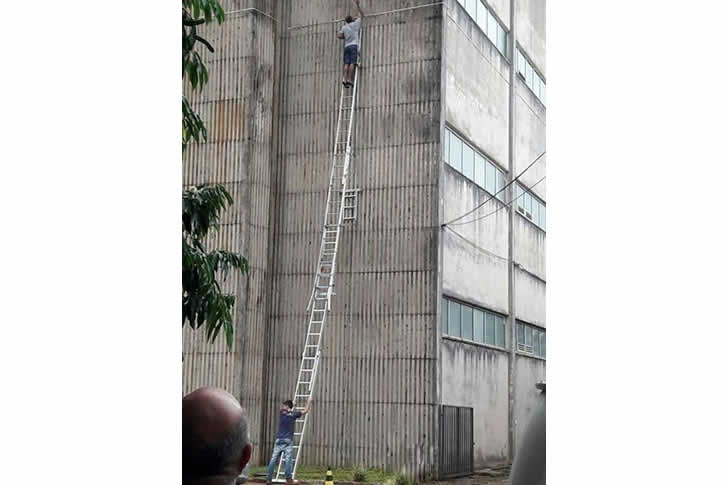 His clients may question his life choices, but there’s no denying he’s got the most unique view in town! Safety third? More like safety’s having a day off while Bob’s busy defying gravity… and common sense!