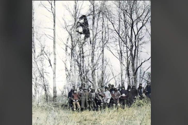 Nel 1937, uno stallone nero è appeso a un grande albero fuori Louisville, Kentucky, attirando una folla di spettatori. Il cavallo è stato trascinato dall’alluvione fino all’albero ed è annegato mentre era appeso ai rami.