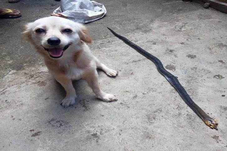 #11 Minuti dopo lo scatto di questa foto, questo eroico cane è morto a causa del veleno del cobra che aveva ucciso. Il serpente aveva cercato di entrare nella casa del suo padrone, dove si trovavano dei bambini. Il cane sorrideva nonostante il dolore causato dal veleno. È il volto che dice: “Ho fatto un buon lavoro, padrone.”