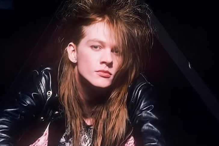 Como vocalista do Guns N’ Roses, a energia selvagem, o cabelo comprido e o apelo sexual cru de Axl Rose em vídeos como “Welcome to the Jungle” fizeram dele um deus do rock e “galã” do final dos anos 80.
