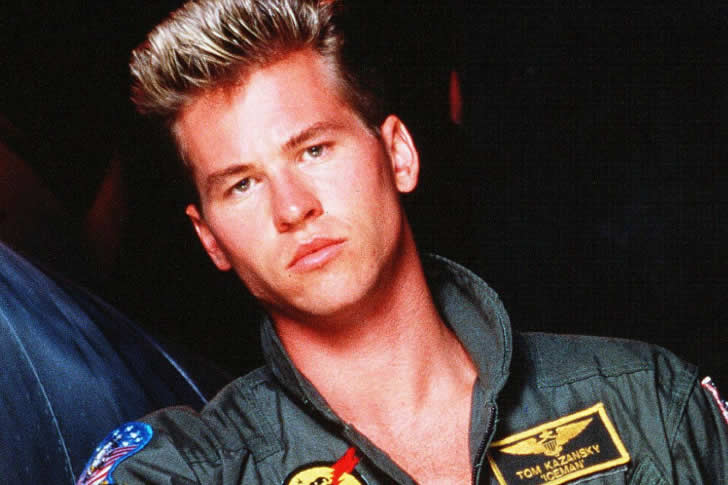 Val Kilmer alcançou o status de galã como o arrogante Iceman em *Top Gun*, com seus impressionantes olhos azuis e sorriso confiante. Papéis em *Willow* e *The Doors* consolidaram ainda mais seu status como um protagonista de cinema.