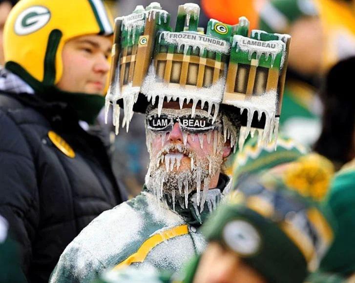 Angesichts der als “gefrorene Tundra” bekannten Stadionumgebung hat er definitiv den richtigen Look gewählt. Er entschied sich, das Eiskristallmotiv als Hut zu tragen. Seine einzigartige Kopfbedeckung zeugt von der Intensität und Liebe, mit der er sein Team anfeuert. Es ist beeindruckend, wie weit Menschen gehen, wenn es um ihren Sport geht.