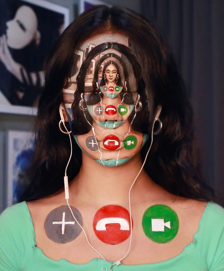 Das kunstwerk vermittelt durch sein scheinbar endloses Muster, wie Smartphones uns überfordern können. Die permanente Verfügbarkeit belastet jene, die Schwierigkeiten bei der Grenzsetzung haben. Obwohl sie sich Zeit für sich wünschen, können sie nicht vom Handy abschalten, das unaufhörlich klingelt und die Verbindung aufrechterhält.