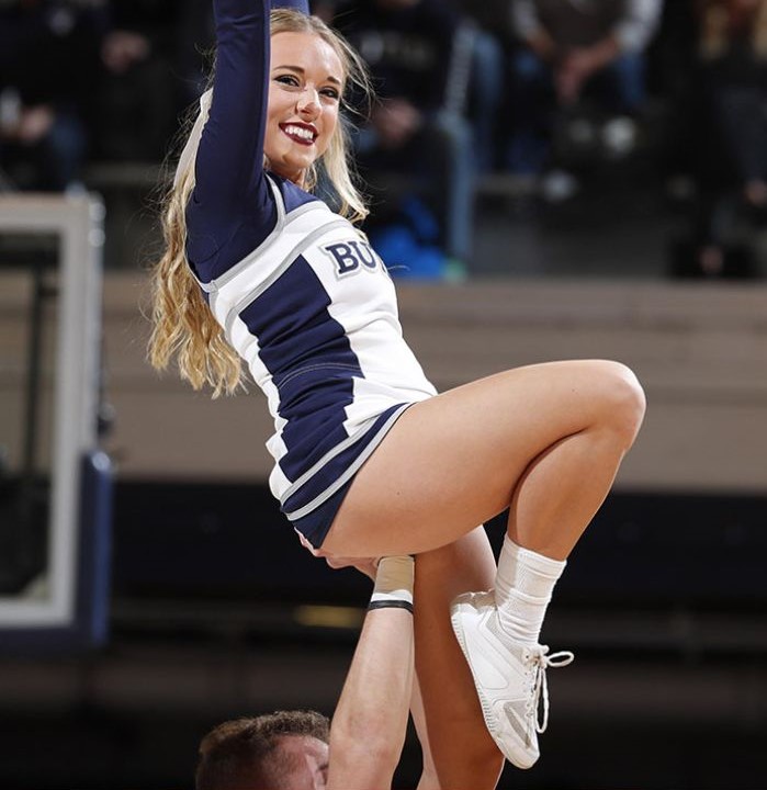 Doch ein Blick auf die Hand ihres Partners (“Base”) verrät die Wahrheit: Sie ist schief gerutscht, was die “Flyer” in eine unsichere Position bringt. Für den Stunttyp ist das gefährlich – aber sie hält cool durch, ohne einen Nerv im Gesicht zu verraten. Ein Mix aus Profischaft und innerem Schrei: Lächeln, um nicht zu weinen – die Devise jeder Cheerleaderin in Not.