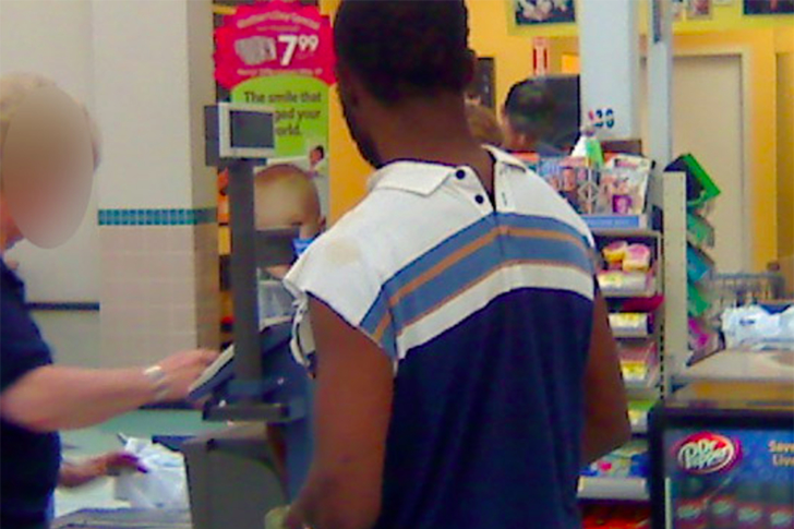 Unsere Vermutung ist, dass er zu spät dran war und nicht bemerkt hat, dass sein Hemd verkehrt herum anhat… oder doch? Die abgeschnittenen Ärmel sind auch bedenklich, und es sieht so aus, als wäre das Hemd eine Größe zu klein. Jemand sollte diesem Mann sagen, was man nicht tragen sollte!