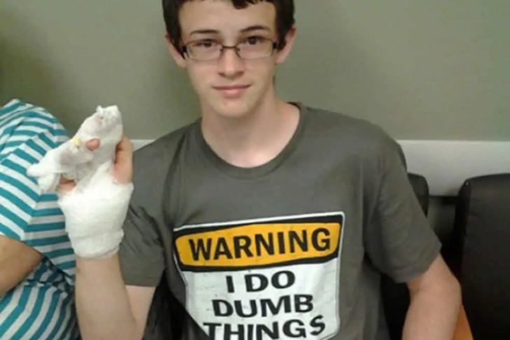 Dieses T-Shirt ist die perfekte Ergänzung zum Gipsverband – aber kommt die Warnung nicht etwas spät, nachdem dein Bruder schon den Arm gebrochen hat? Wir wissen, dass er gerne Bäume erklimmt, Pokémon Go spielt und von Dächern in Schwimmbecken springt.