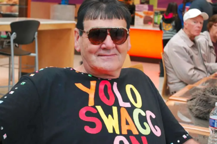 Sein Shirt trägt “Yolo” – richtig, denn “You only live once”! Applaudieren wir ihm für den Mut, es zu sagen. Allerdings steht darunter “Swacc” statt “Swag”. Vermutlich wollte er ein Shirt mit “Swag” (Styl) kaufen, aber er erfindet wohl versehentlich seinen eigenen Slang. Tja, “swacc” wird wohl nie ein Hit werden – aber dafür gibt es einen A für den Versuch!
