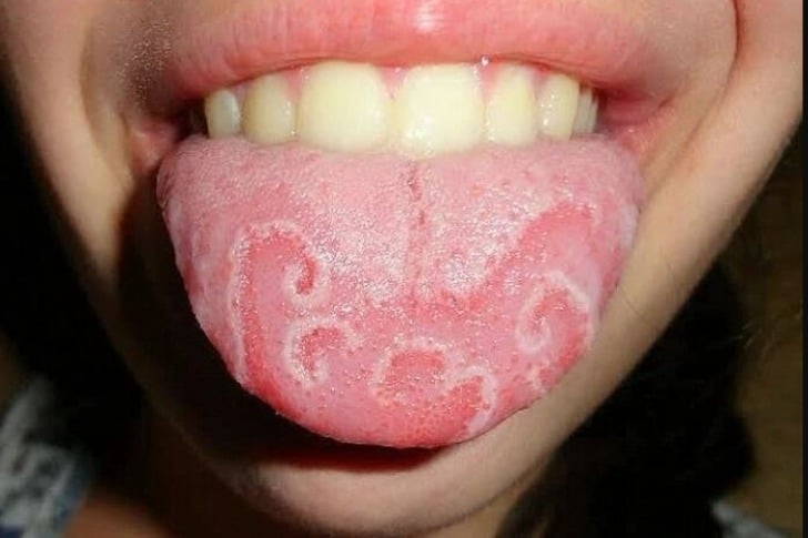 Es zeigt sich, wenn die Zunge durch scharfes Essen gereizt wird oder man sie zu grob berührt. Man sagt, es brennt und schmerzt, und manchmal führt es sogar zu Erbrechen.