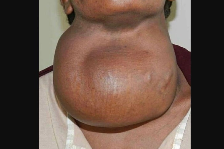 40 beunruhigende medizinische Bilder, die ehrlich gesagt erschreckend sind #40 Ein Patient mit schwerem Kropf. Advertisements Ein Kropf ist eine Schwellung am Hals, die durch eine vergrößerte Schilddrüse entsteht. Advertisements Nächste Seite Sie haben das Ende erreicht Advertisements NEXT PAGE