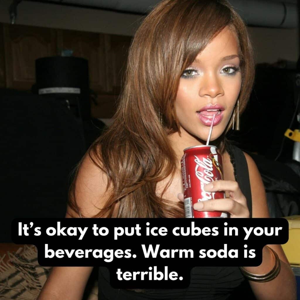 Además, aquí en América, nos encantan las bebidas frías. Es prácticamente un pasatiempo nacional… Si ves a alguien disfrutando de su gran cola sin hielo, probablemente te inclinarías a preguntarles por qué. Así que, a todos mis amigos europeos, los animo a darle una oportunidad al hielo. Confíen en mí, sus papilas gustativas se lo agradecerán.