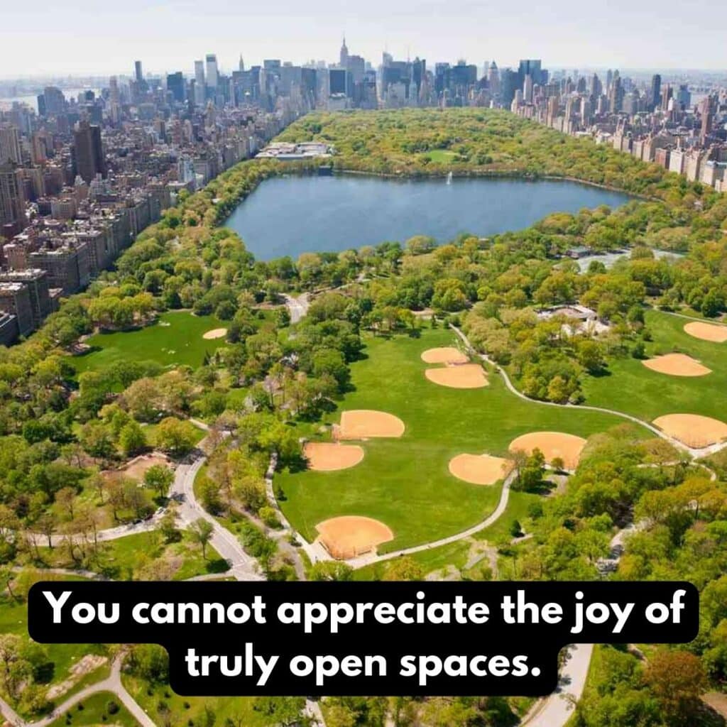 Si hay algo de lo que tenemos mucho en EE. UU., son los espacios abiertos. ¿En serio, has visto las Grandes Llanuras? ¡No se llaman “grandes” por nada! Y ni me hables de nuestros parques nacionales: Yosemite, Yellowstone y el Gran Cañón.Tenemos acres y acres de espacios abiertos para perderse…