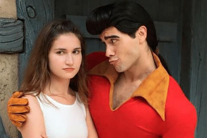 Gastón, el encantador pero engreído personaje deLa Bella y la Bestia, intentó famosamente conquistar el corazón de Bella, sin mucho éxito. En Disneyland, no es raro ver a personas disfrazadas de estos queridos personajes, dando vida a la magia para los visitantes. En esta foto, la joven posa como Bella, creando un recuerdo perfecto y añadiendo a la atmósfera lúdica del parque.