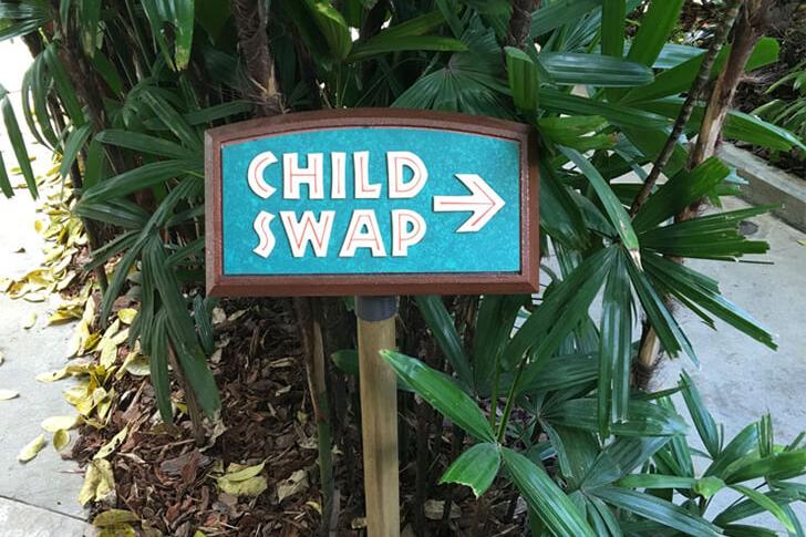 Sí, lo leíste bien: a primera vista, el cartel de “Child Swap” (Intercambio de niños) podría sonar un poco alarmante para quien no esté familiarizado con él. Pero no te preocupes, ¡Disney solo busca la diversión! El cartel en realidad se refiere al sistemaRider Switch(Cambio de pasajero), que está diseñado para asegurar que todos los miembros de un grupo puedan disfrutar de las atracciones.
