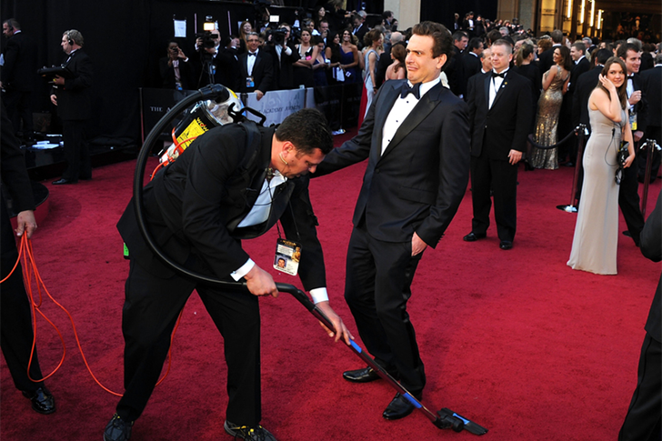 Diese Szene ist ziemlich lustig und hätte nur jemandem wie dem charmanten Jason Segal passieren können. Seine Schauspieltalente und seine Mimik sind einzigartig, und bei seinem Vorfall auf dem roten Teppich haben sich seine Fähigkeiten bewährt. Während er auf dem roten Teppich bei der Oscar-Verleihung ging, wurde Segal plötzlich von dem Reinigungspersonal unterbrochen, und seine Reaktion ist unbezahlbar.