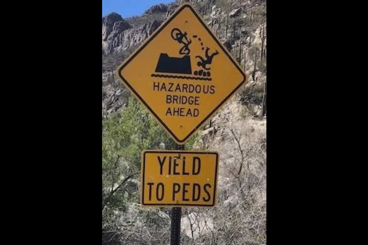 Du wirst diese erschreckenden Warnzeichen, die auf der ganzen Welt gesichtet wurden, nicht glauben 36. Warnschild für Radfahrer auf den schmalen Steinbrücken im Sabino Canyon, Arizona Advertisements Advertisements VorigNächste Seite Originaler Beitrag Advertisements PREV NEXT PAGE