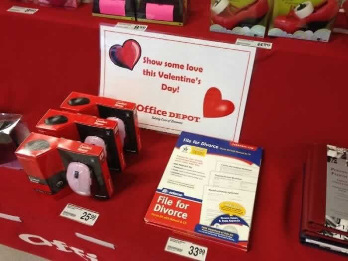 Les taux de divorce sont peut-être en baisse, mais le risque reste une réalité pour de nombreux couples. En se promenant dans un grand magasin, quelqu’un a remarqué un « kit de dépôt de divorce » posé directement sous une bannière de la Saint-Valentin. C’est un rappel assez sombre de la façon dont les choses peuvent changer.