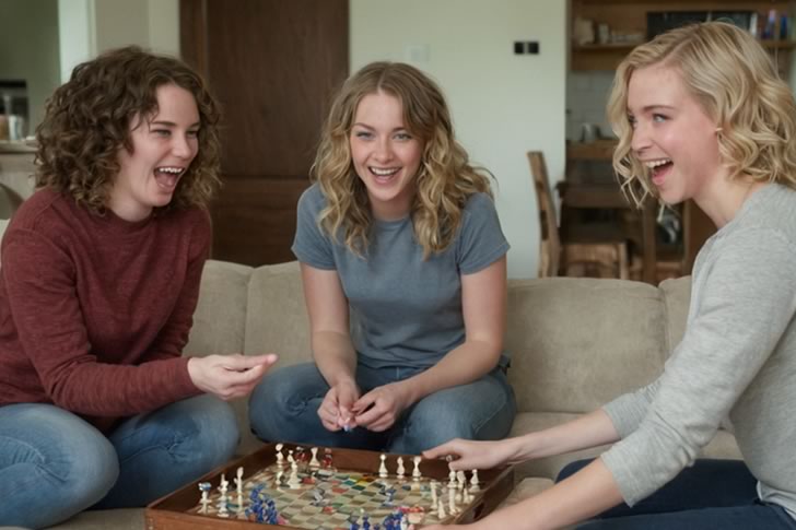 Jamie and Emily decided to spend the day doing the things they used to enjoy together. Dusting off old board games, they settled into the living room, Sarah joining in with playful curiosity. As they played, familiar laughter filled the air, softening the edges of time lost.