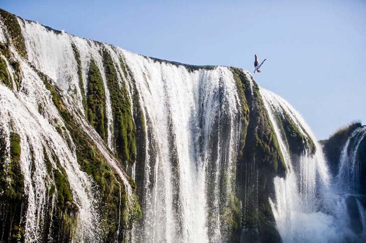 Lo que estás viendo es una foto perfectamente sincronizada de Dihua Lan, el poseedor del récord mundial Guinness por saltar a una cascada. “Tiene más de 60 años y es el poseedor del récord mundial Guinness por saltos en cascada. En la famosa desembocadura del río Amarillo en China y la gran cascada de la torre de agua de la provincia de Heilongjiang, sorprendió al mundo con su salto”, dijo el fotógrafo que tomó esta foto.