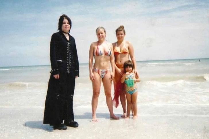 ¡Esto no es solo una fase pasajera, mamá! Pero quizás habría sido un poco más sensato para esta joven entusiasta gótica enfrentar la realidad y quitarse el atuendo completamente negro mientras estaba en la playa. Cuando lo piensas, ¡es difícil imaginar una elección de ropa más incómoda bajo el sol abrasador!