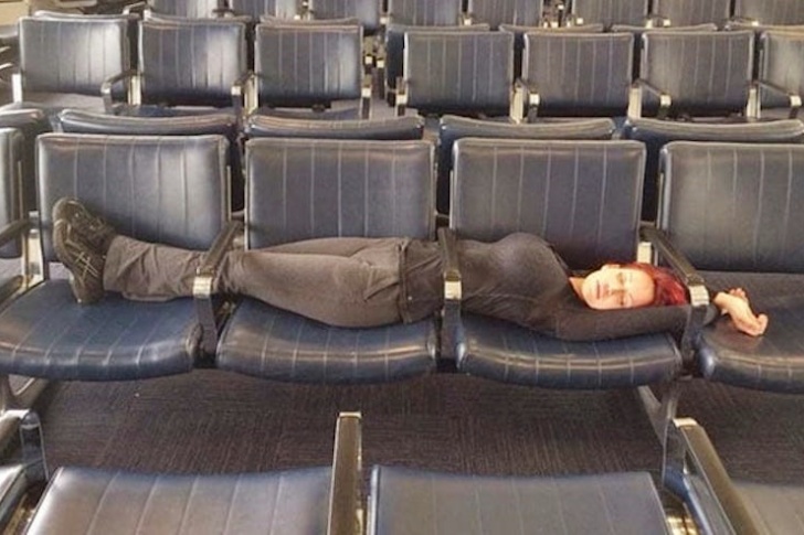 Diese Frau verdient Anerkennung für ihre unkonventionelle Lösung. Geschickt schlüpfte sie unter die Armlehnen – man hofft nur, dass sie beim Aufbruch zum Abflug ebenso leicht wieder herauskam.