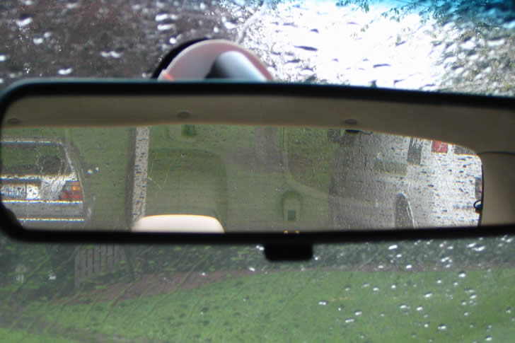 40. The rearview mirror in most vehicles has a tab at the bottom that you can flip to reduce glare from the headlights behind you.
