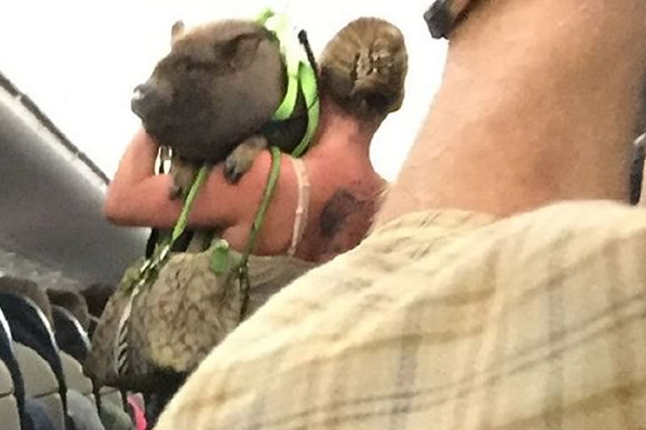 In an age where emotional support animals have become a familiar sight at airports, this photo takes things to a new level. A woman boards a plane carrying a full-sized pig in her arms, turning heads and sparking plenty of double-takes. It’s not every day you see livestock on a commercial flight, but here it is—in all its snorting, harnessed glory. Whether you find it bizarre or heartwarming, it’s definitely one of those “only on a plane” moments.