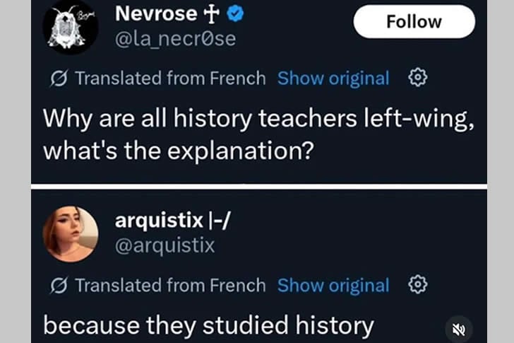 The 42 Most Mind-Blowing Ways People Got Murdered by Words 25. Why are all history teachers left-wing Advertisements Original Post Advertisements PREV NEXT PAGE