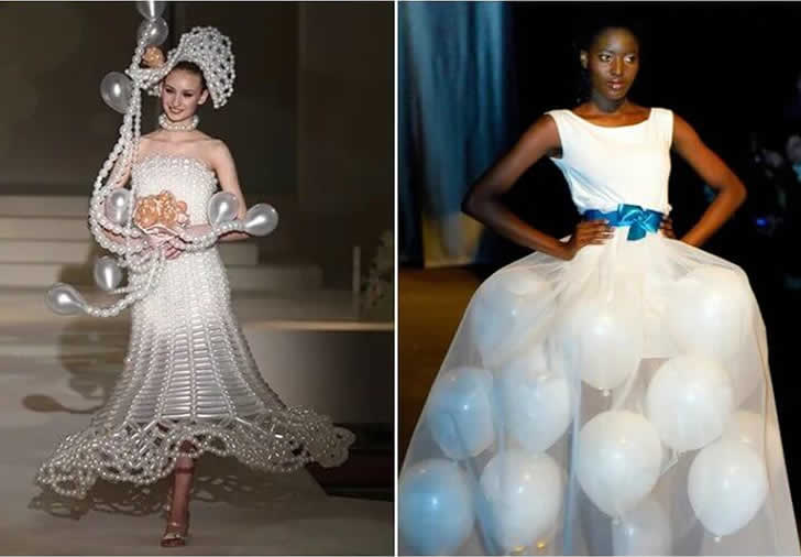Sure, this idea gets points for creativity and maybe even comfort, but it looks more ready for a costume contest than a wedding aisle. While it’s memorable, we recommend saving the balloons for the reception decorations—not your dress.