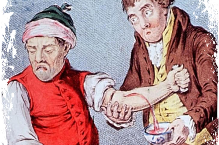 From ancient Greece through the 1800s, bloodletting was the medical community’s default move. Coughing blood? Let more out. Feeling weak? That’s just your body being too full of blood! Using knives, glass cups, or dozens of leeches, doctors would drain patients of pints at a time—sometimes several sessions in a single day.