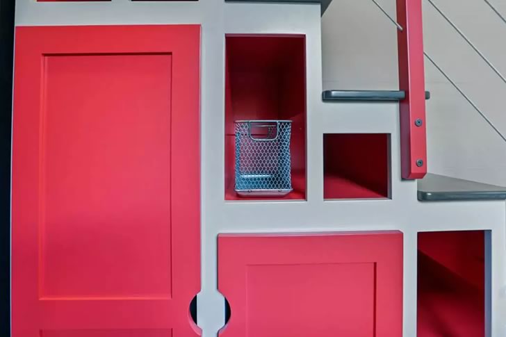Beneath the stairs lies a clever use of space—hidden compartments that turn unused corners into practical storage. These spots are perfect for stashing everyday items like shoes, books, or tools, keeping the rest of the house clutter-free and organized.