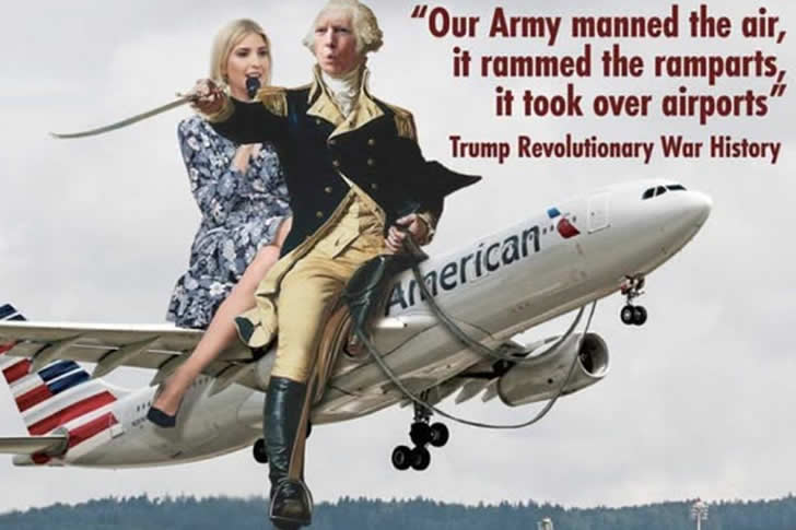 In un discorso del 2019, Trump affermò che l’Esercito Continentale “occupò l’aria, prese d’assalto i bastioni… conquistò gli aeroporti” durante la Guerra d’Indipendenza. L’errore anacronistico, che mescolava la storia del XVIII secolo con l’aviazione moderna, divertì gli storici.