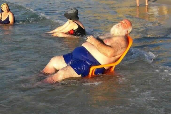 クリスマスが終わったらサンタは何してる?この写真によると、ビーチでくつろいでます!自分専用のビーチチェアで波音をBGMに昼寝中。