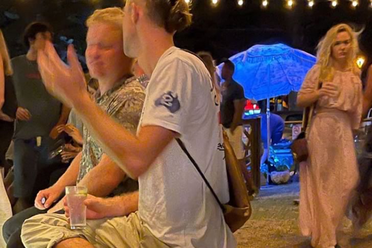 Die Magie dieses Moments liegt in seiner lässigen Absurdität. Während alle anderen stehen oder normal sitzen, hat er es geschafft, eine völlig neue Kategorie der Positionierung zu erfinden: den schwebenden Halbsitz. Es ist ein perfektes Beispiel dafür, wie menschliche Körper, wenn Komfort auf Improvisation trifft, in den unerwartetsten und lustigsten Konfigurationen enden können. Ob beabsichtigt oder nicht, es ist ein Moment, der in Erinnerung bleiben sollte – und wahrscheinlich auf der nächsten Party nachgeahmt wird.