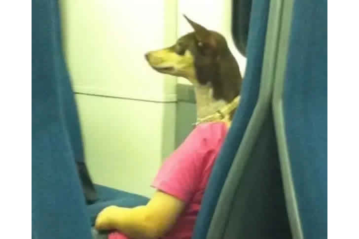 この写真は、完璧なタイミングがもたらす楽しさと驚きを教えてくれます。犬の顔と人間の体が織りなすユーモアは、見る人の心を掴んで離しません。普段見慣れた電車内の風景が、こんなにも面白い瞬間になるなんて驚くばかりです。完璧なタイミングで撮影されたこの写真は、日常に隠れたユーモアと驚きを気づかせてくれるでしょう。
