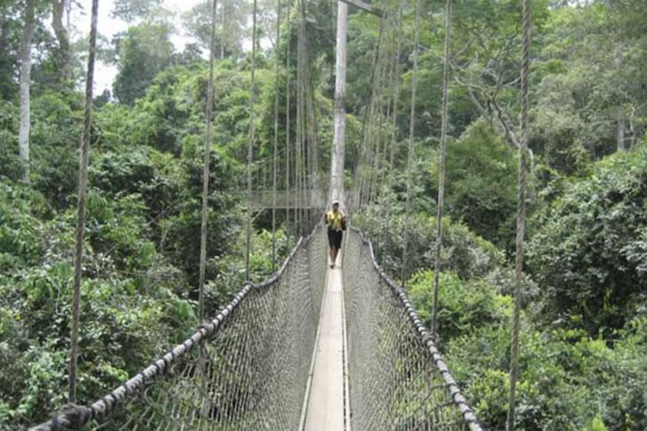 カカム国立公園内にある吊り橋は、ガーナにおける目玉の一つで、全長350m、最高部での高さは40mに達します。アフリカ大陸には吊り橋が2本しか存在しないとされており、そのうちの一つがこのカカム国立公園の吊り橋です。橋の幅は一人が通れる程度の狭さで、確実に通行するのは不可能です。実際に渡った人々は、高さよりも橋の揺れが恐怖を感じさせたと報告しています。