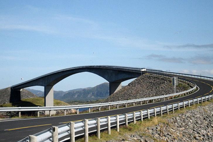 Storseisundet橋は、ノルウェー本土とアヴェロイ島を結ぶ国道橋で、美しい放物線と緩やかなアーチが特徴です。この清々しい美しさは、見る者に「やっほー」と叫びたくなるような気持ちを与えますが、実際の建設は容易ではありませんでした。