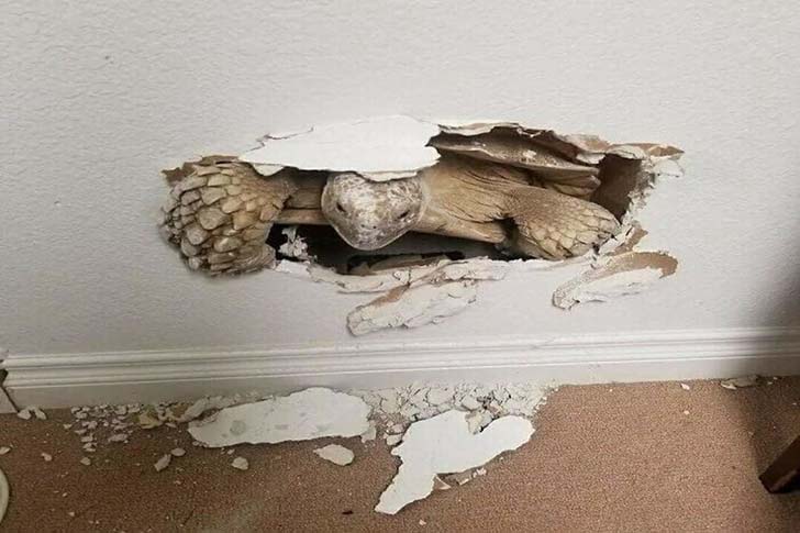 午後のお茶の時間にお客さんが来る予定なんてなかったのに、このカメはあなたの静かな時間を喜んで邪魔してくるでしょう。ですが心配しないでください、このカメさんは多分とてもフレンドリーです。ただ、壁が邪魔だったので、歩く代わりに(カメはゆっくり歩きます)、道を掘って通り抜けることを選んだだけなのです。まぁ、少なくともこの家の人はネズミを飼っていないでしょうね!