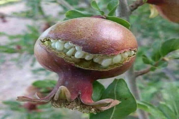 どんな植物にも、本来の色になる時期があります。このザクロは、その日が少し早かったのかもしれません。鮮やかでジューシーな赤色になるはずの種が、白くて恐ろしい不気味な歯のように割れ目から見えています。その不敵な笑みはむしろあざ笑っているかのように見えて、今後ザクロを見るのが怖くなりそうです。