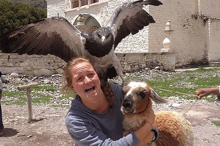 Il est très probable que le hibou n’ait pas voulu la surprendre autant, et maintenant elle a un nouveau compagnon inattendu ! Quand il s’agit de se faire des amis, avoir un rapace comme copain n’est pas si mal… tant que vous n’êtes pas sa cible, bien sûr ! Ce moment a peut-être été un peu effrayant, mais le résultat est une superbe photo et un souvenir de vacances inoubliable.