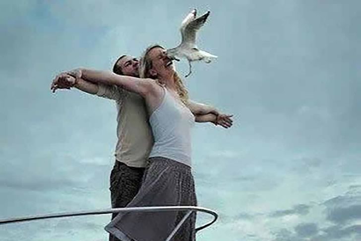 Ils ont tenté de reproduire une pose iconique, espérant prendre une super photo. Malheureusement, seul l’oiseau a fini par s’envoler. Pour être honnête, nous sommes du côté de l’oiseau dans cette situation. Peu de choses sont plus amusantes que des animaux ruinant les plans humains. De plus, Titanic existe depuis des décennies ; il est peut-être temps de choisir un autre film à imiter !