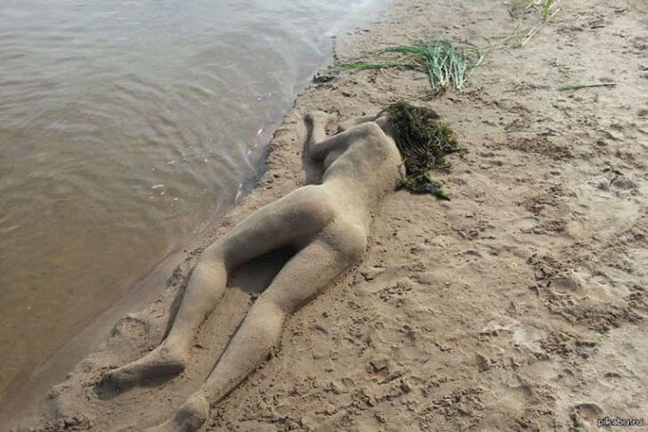 Este é o exemplo perfeito de como usar a areia para surpreender a todos. É tão realista que não é de admirar que algumas pessoas o confundam com uma mulher de verdade.