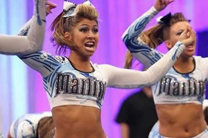 Uma expressão facial saída diretamente de um filme mudo — puro choque, sobrancelhas levantadas, uma boca em “O” perfeita. Esta líder de torcida sabe como projetar emoção — mesmo para as últimas fileiras.