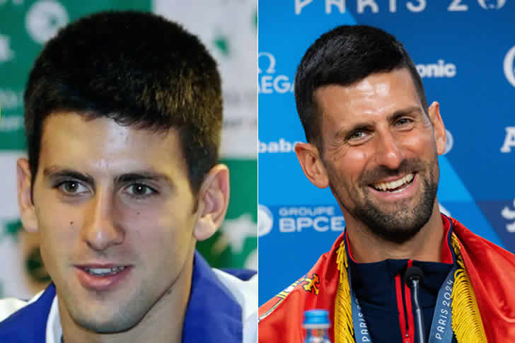 Novak Djokovic, aos 37 anos, já foi o jovem prodígio que estreou no tênis profissional em 2003. Naquela época, ele era um talento bruto, conquistando seu primeiro Grand Slam em 2008, com energia e determinação impressionantes. Hoje, ele é uma lenda viva, ainda competindo no topo, com seu último título em Wimbledon 2024 mostrando que sua paixão segue intacta, mesmo com sinais de desgaste físico aparecendo.