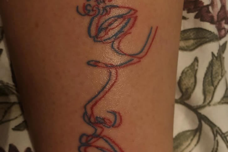 Tribal tattoos are iconic for their bold lines and cultural significance, but this one looks like a child’s scribbles rather than a traditional design. The lines are uneven, disconnected, and lack flow or symmetry. Instead of a fierce symbol, it resembles a messy doodle.