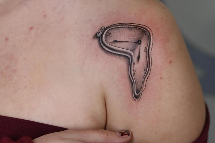 A melting clock might sound like a tribute to Salvador Dalí, but this one was clearly not inspired by any artistic genius. The numbers are scattered, the hands bend oddly, and the whole design looks like it’s sliding off the skin. Instead of symbolizing time’s fluidity, it looks like the wearer sat on their tattoo before it dried.